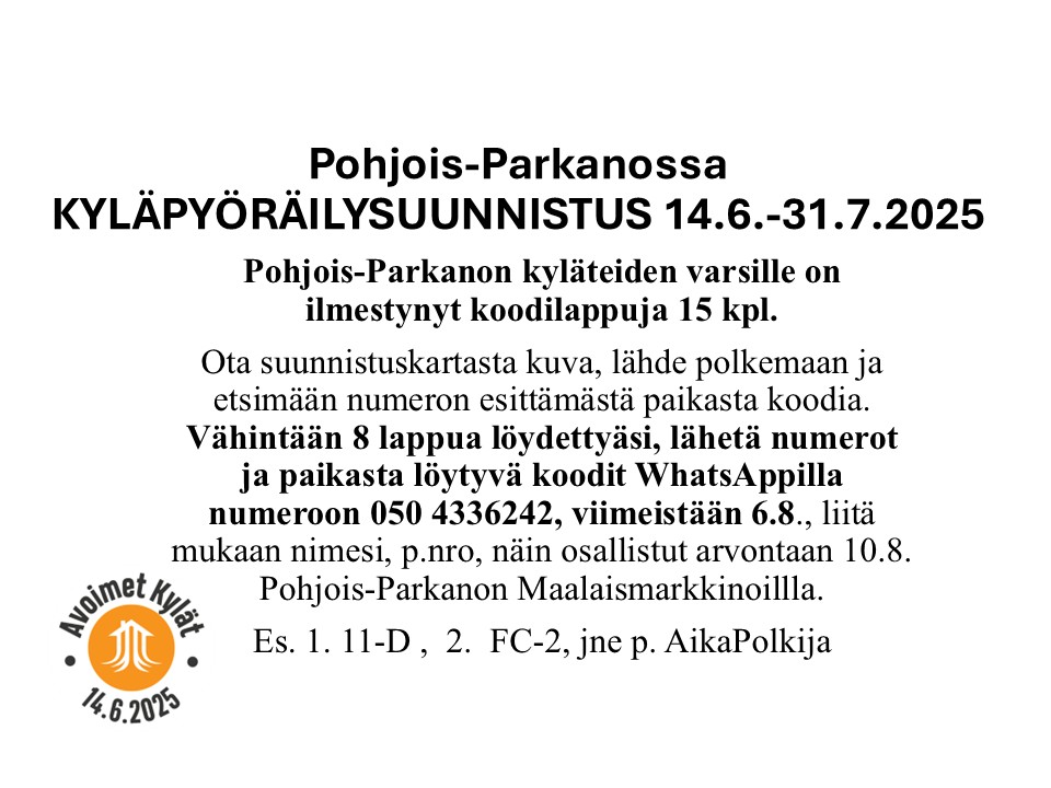 Kylätiedote jaetaan alueen talouksiin. Voit tilata sen omaan sähköpostiin osoitteesta pohjoisparkano@gmail.com
